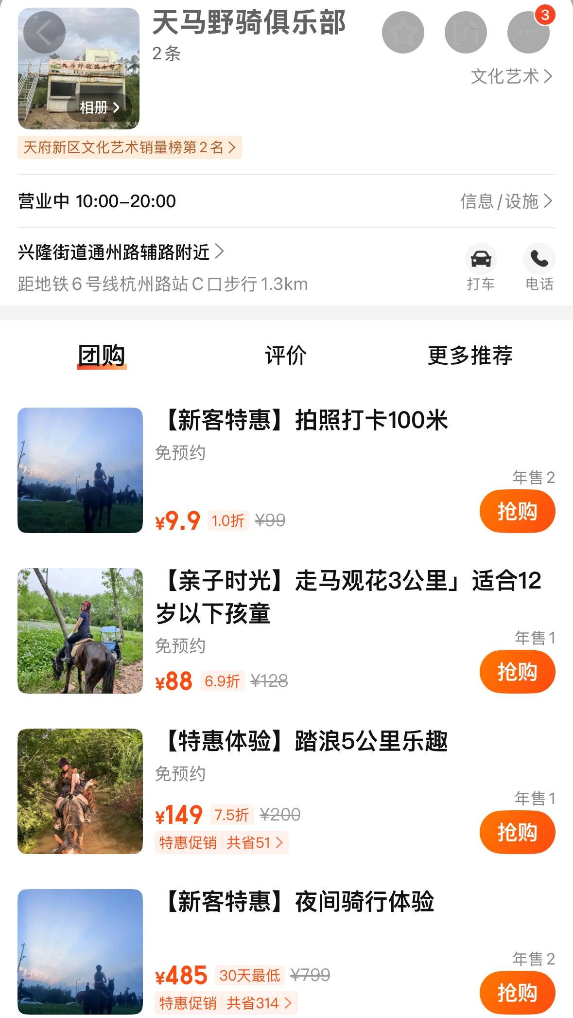 8月26日,记者在天马夜骑俱乐部的大众点评平台上看到,该商家显示还在营业中,工作人员电话中表示,“还在正常营业,目前有夜骑、3公里骑行、骑马追高铁等项目可以体验。”