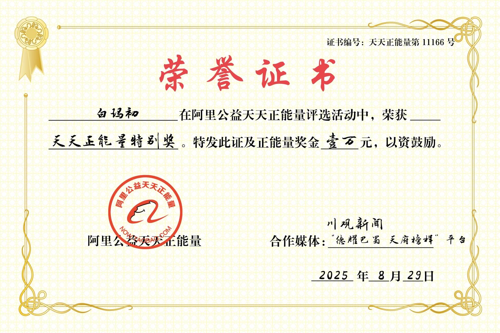 为让“有德者有得”更加彰显,川观新闻与阿里巴巴“天天正能量”公益平台进行合作,精选典型案例申报公益奖励,符合条件的可获得现金资助,后续还将拓宽公益资金渠道。据了解,“天天正能量”是阿里巴巴集团成立的公益项目,旨在通过奖励日常生活中温暖美好的凡人善举,传播真善美。该项目联合全国400多家媒体,累计奖励13823人,投入公益金上亿元,覆盖全国300多个地级市及1000多个县级行政区。