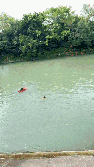 由于要带着落水男子一同在水中移动,白玛初的体力消耗得极快,连续几次尝试向第二个救生圈靠近,都没能成功。危急时刻,岸边的群众纷纷自发加入救援:有人朝着河中大声喊话,指导落水男子“往后面躺,放松才能浮起来”;有人对着白玛初加油鼓劲,“妹妹别慌!先保存体力”“往前游,我们都在这儿帮你”。