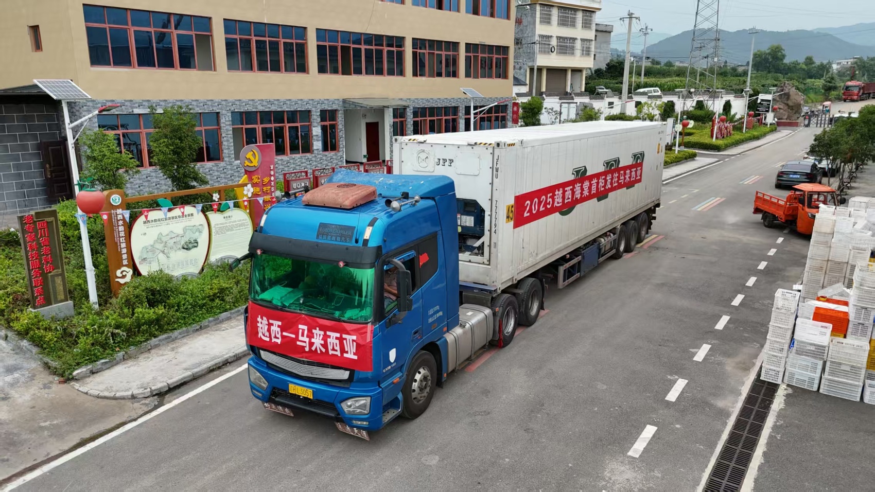 今年,园区成功获评国家级出口注册备案基地。负责出口的四川锦益友贸易有限公司已与马来西亚、泰国、新加坡及菲律宾等地的经销商签订了销售协议,首批1.8万公斤于8月6日发车,运往马来西亚。截至目前,已有7.5万公斤锦绣海棠果出口至马来西亚。