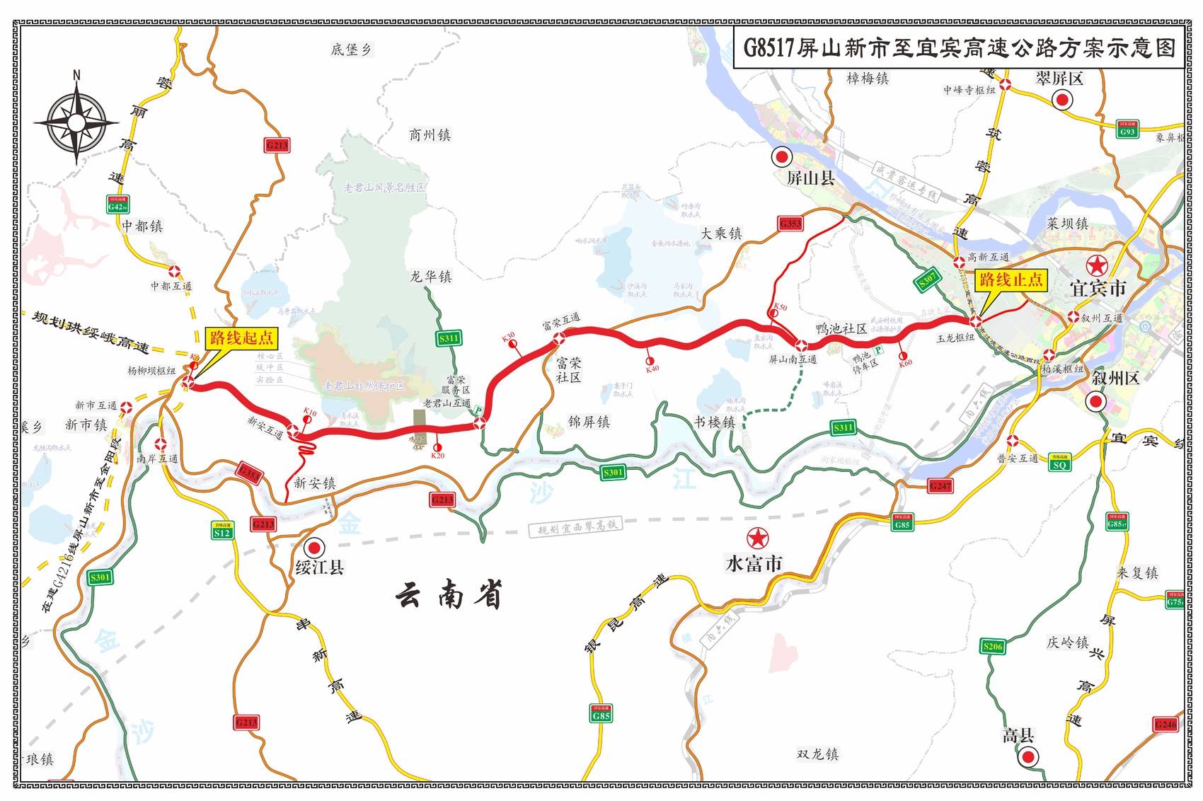 G8517屏山新市至宜宾高速公路方案示意图。 图据四川新宜高速公路开发有限公司