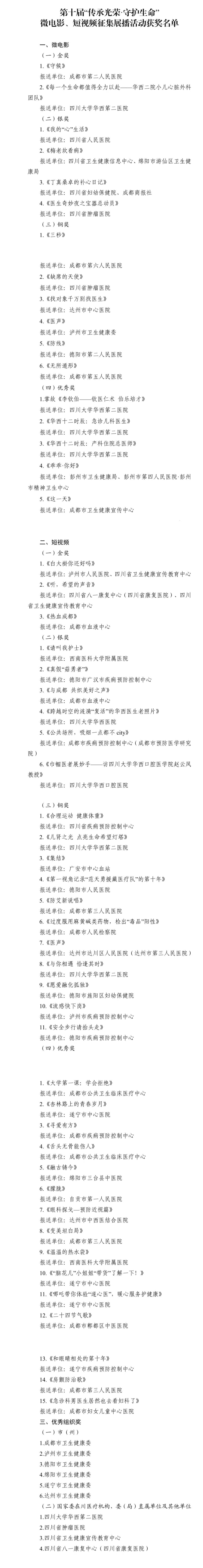 “传承光荣·守护生命”微电影、短视频征集展播活动,自2015年开展以来,已连续举办十届,10年来累计征集作品6000余部,评选出优秀作品近2000部,在弘扬职业精神、讲好卫生故事、宣树行业形象、增进群众健康福祉、推动行业文化繁荣发展等方面发挥了重要作用,已成为全省卫生健康系统文化传播的重要品牌。