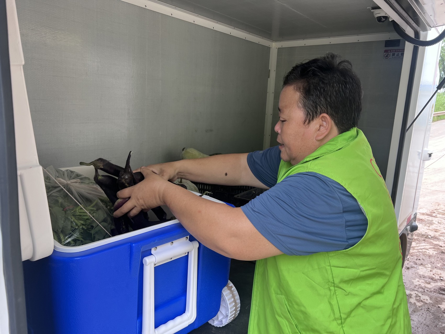 “杨红星家,两个南瓜、五斤辣椒、五斤黄瓜......”手机扫描车辆上的二维码开启车门,孔玉清再次清点了一大早从各个村民家收集的新鲜农产品,整齐码放在生鲜保温箱。