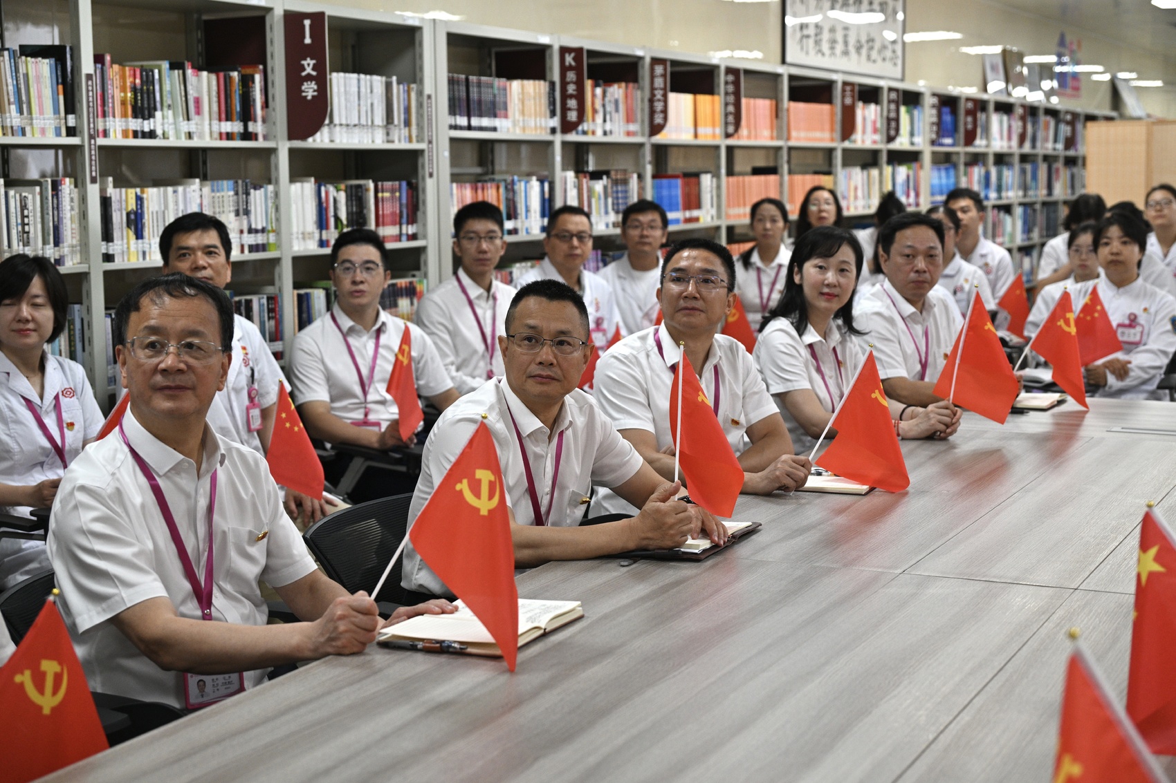 成都市妇女儿童中心医院一线医务工作者们集中收看纪念中国人民抗日战争暨世界反法西斯战争胜利80周年大会直播。
