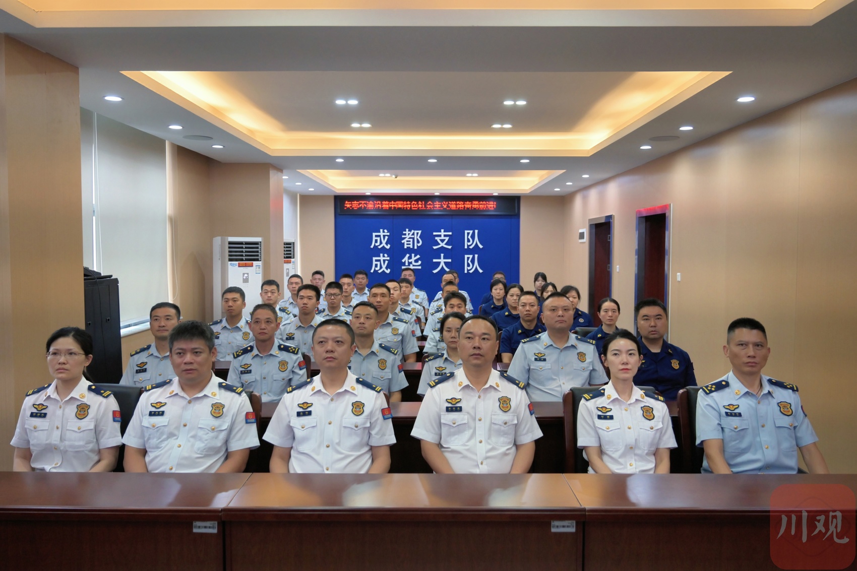 成都市成华区消防救援大队集中收看纪念中国人民抗日战争暨世界反法西斯战争胜利80周年大会直播。