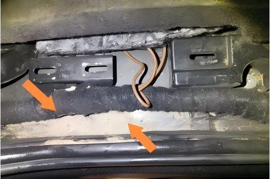 “这份报告是不真实和严谨的,实际上我买的这辆二手车有很多地方存在因为进水而出现锈蚀或有水痕泥沙的情况。”宋先生对报告内容提出了异议。现场,宋先生在车内多个对应检测项部位找出了存在锈蚀或水痕或泥沙的情况。“这些地方都没有在报告中的对应项被注明。”宋先生指出,检测项目涉及的“主驾座椅轨道及骨架”“副驾座椅及轨道骨架”“后排座椅骨架及海绵”在报告中均显示为无水泡痕迹,但主驾和后排座椅轨道实际上均存在不同程度的明显锈蚀;此外,“左侧门槛线束”“左前底板隔音胶及封边胶”“备胎槽”显示无水泡痕迹,但地毯下层却有明显的泥沙和水痕。宋先生表示,查博士的检测报告显示27项水泡检测项目中仅4项因存在水痕或锈蚀被标注为“异常”,但他自己查验车辆后,发现至少还有7个地方存在水痕或锈蚀的情况而未被标注。