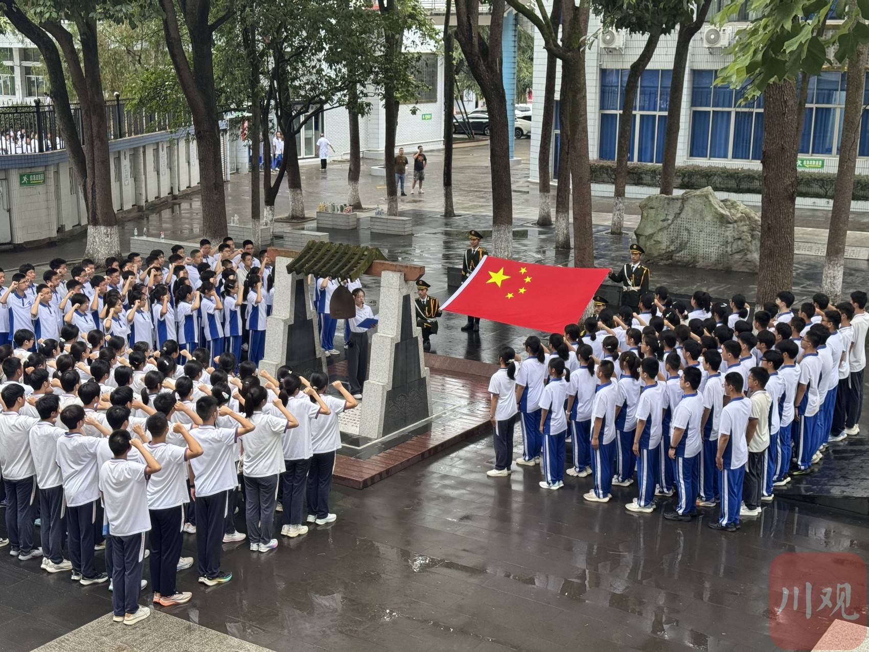 9月3日8时30分,四川省阆中中学,肃穆的钟声响起,放置在学校广场的“醒世钟”在这个特殊的日子再次敲响。