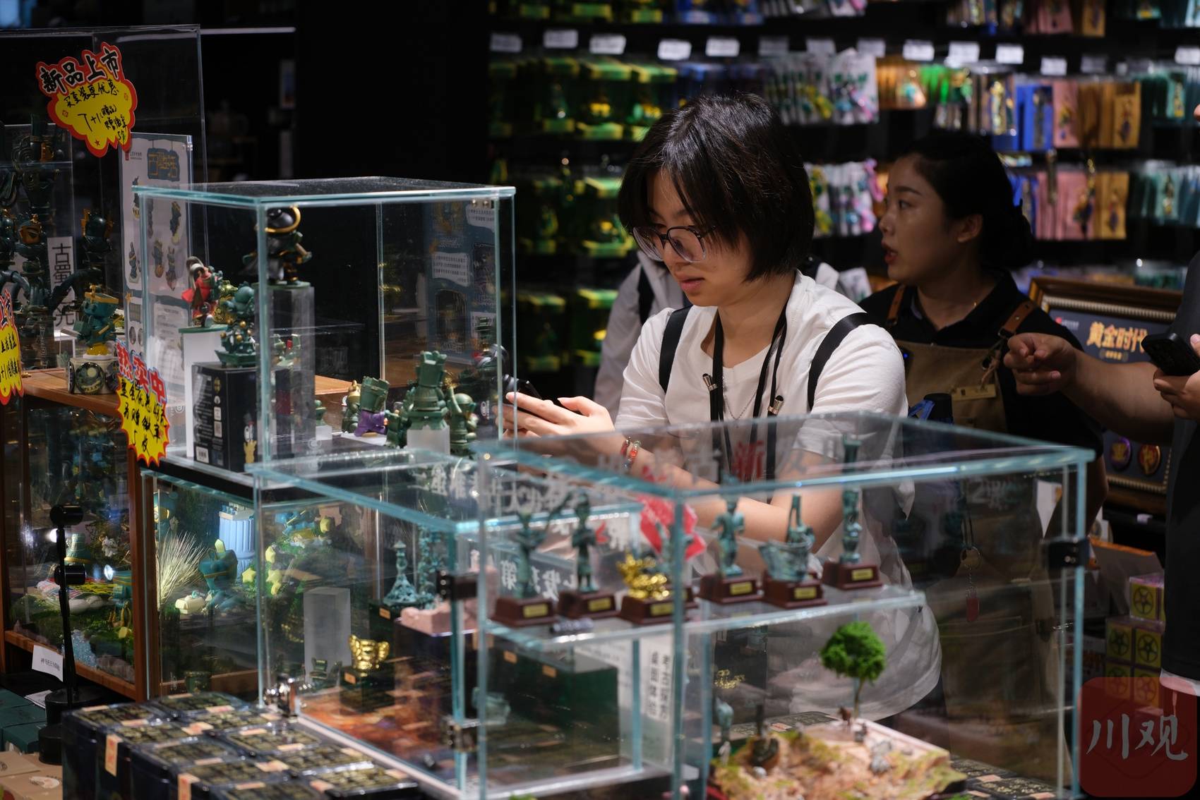 200多公里外的三星堆博物馆内,江苏游客马时有同样新鲜感:“在新开放的世界文化遗产主题馆选购新潮文创新品,古蜀文明已经融入当代生活。”