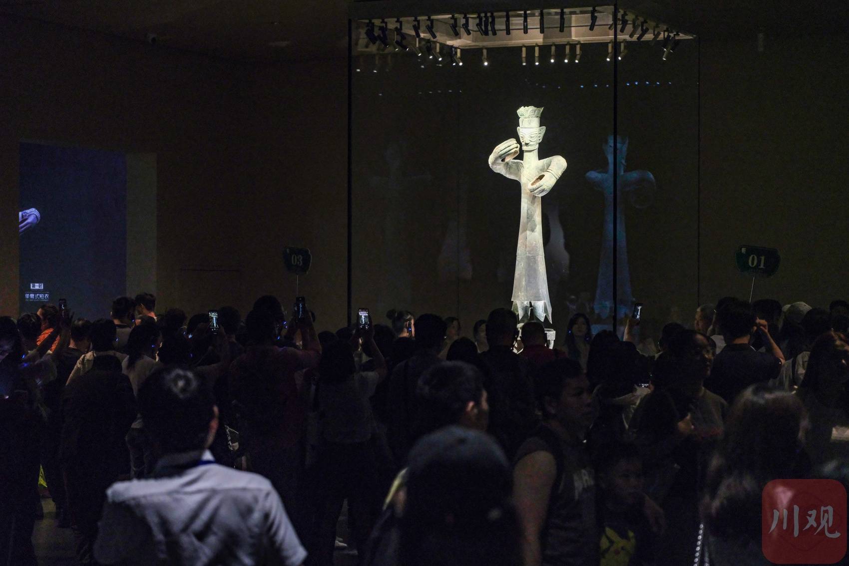 三星堆博物馆内,游客争相一睹青铜大立人。
