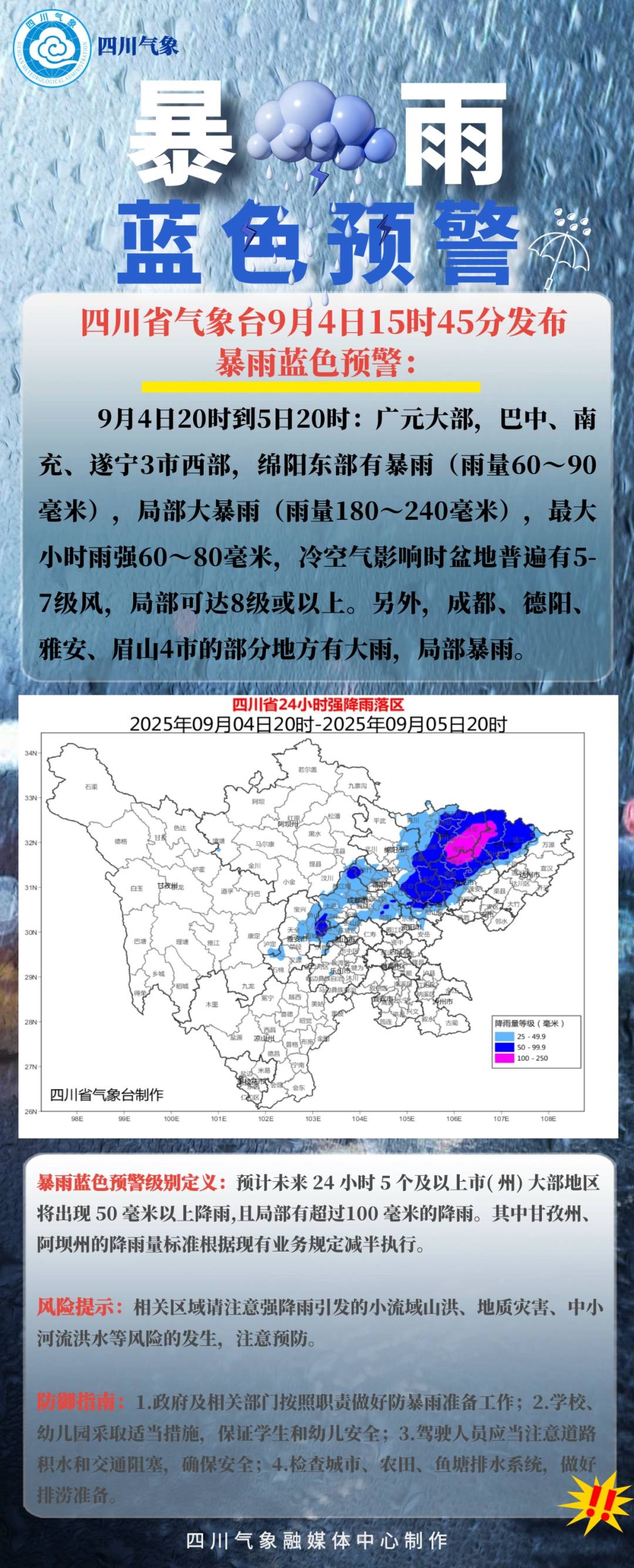 暴雨,局部大暴雨!四川发布暴雨蓝色预警