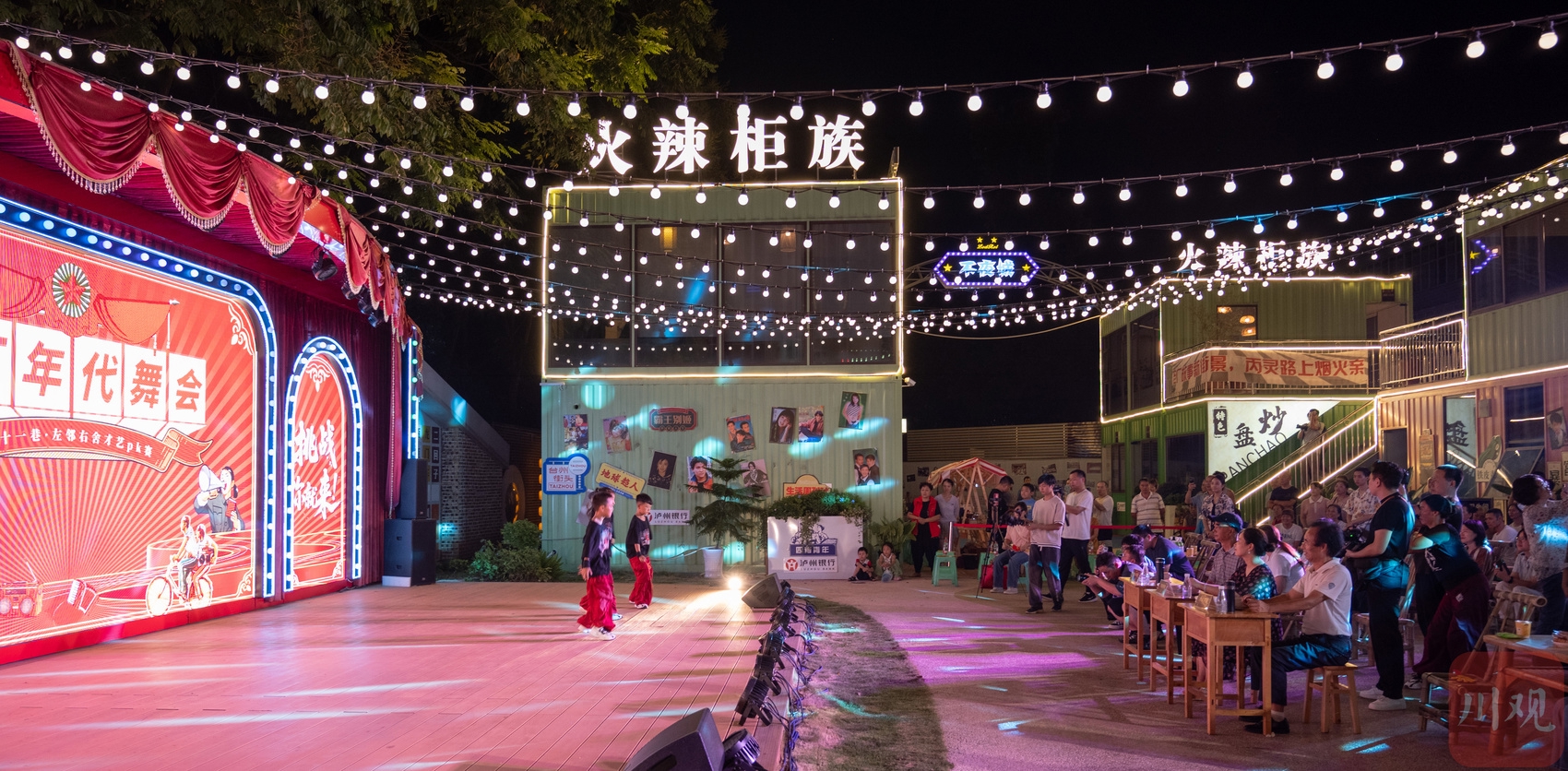 老歌《众人划桨开大船》响起,市民游客踩着节拍跳着舞,热闹的纳溪丝厂·微醺能量站瞬间“燃”了起来。9月4日晚,采访组来到了位于泸州市纳溪区纳溪丝厂街区,记者们瞬间被一波“回忆杀”吸引——