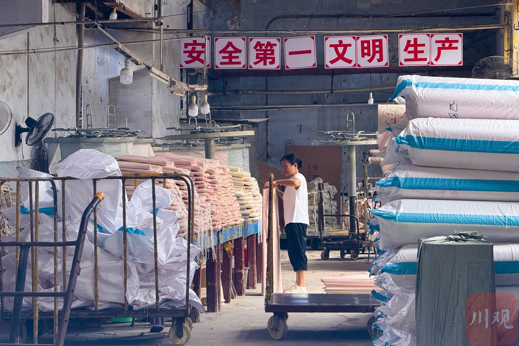 在南充六合丝绸博览园,一边是自动化缫丝工艺车间运来新机器,一边是文旅融合新场景的业态打造。