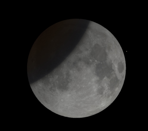 廖凯介绍,初亏是指月球边缘开始进入地球本影,出现明显缺角的阶段。“当月球完全进入本影,此时进入食既阶段,红月亮正式登场,一个通红的月亮展现在黑黝黝的天空上,甚为壮观。”