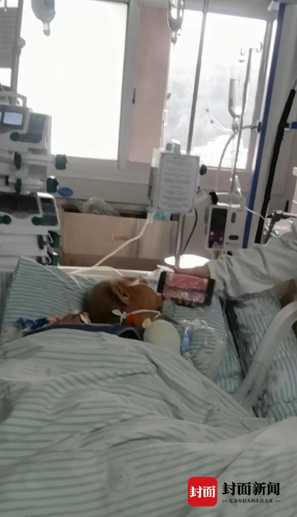 “他昏迷了几天。3日早上突然苏醒了,跟他说话他能听懂,但嘴里插着抢救的管子,说不了话。”彭发伦说,他知道老爷子还在惦记着阅兵仪式,他早就准备好了手机、充电宝,于是在ICU病床前打开直播,将手机放在老人面前。