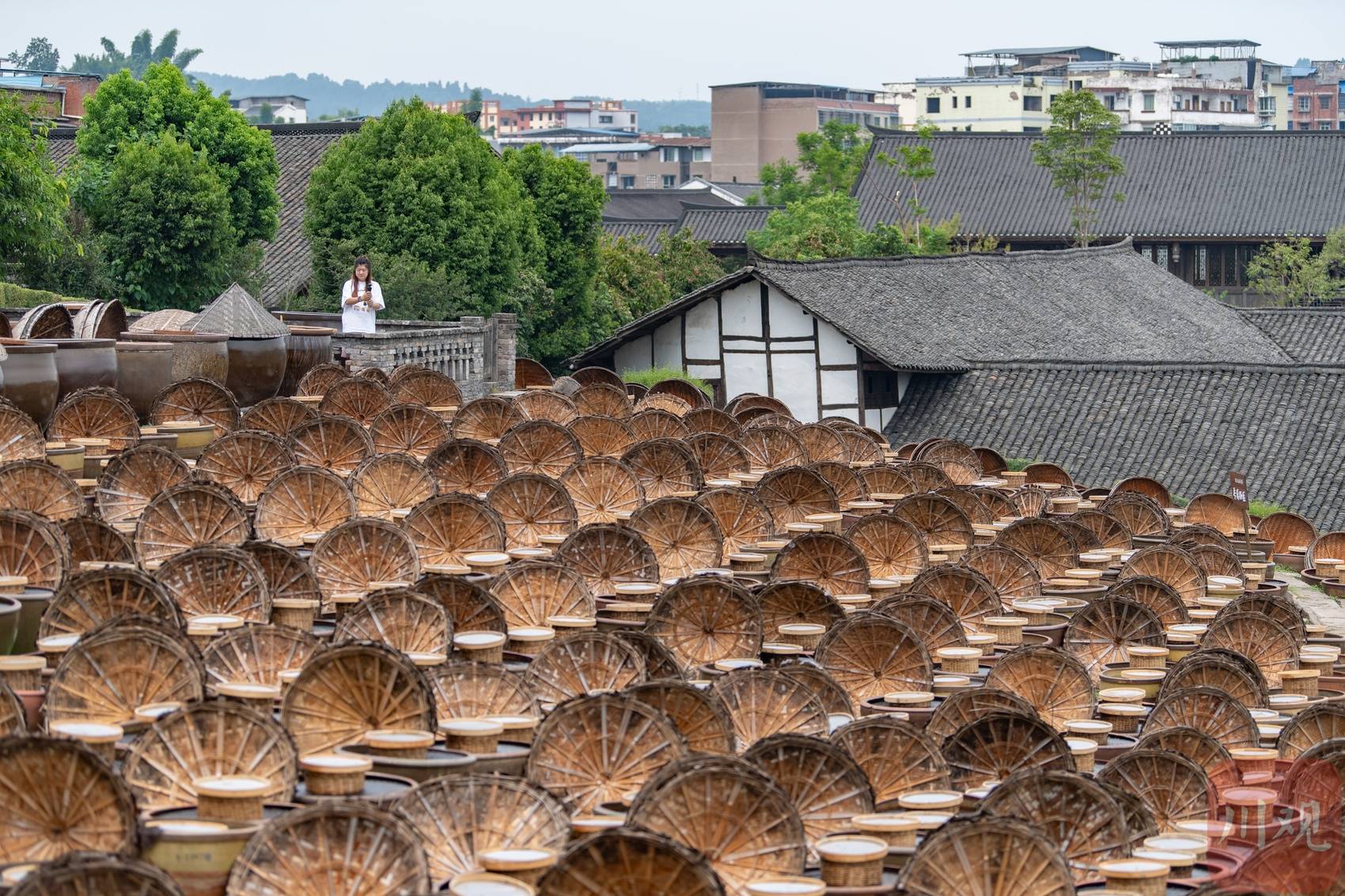 9月5日,游客在泸州合江县先市酱油酿造基地打卡拍照。