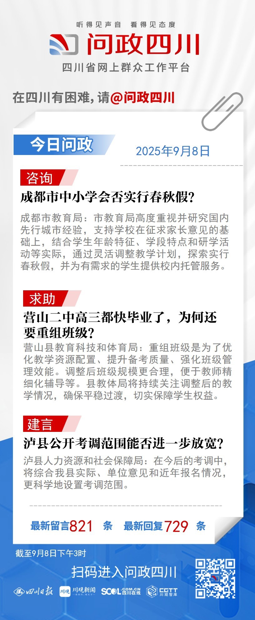 问政四川网友提问:请问今年成都市中小学春秋假有具体安排吗?什么时候才能实施?