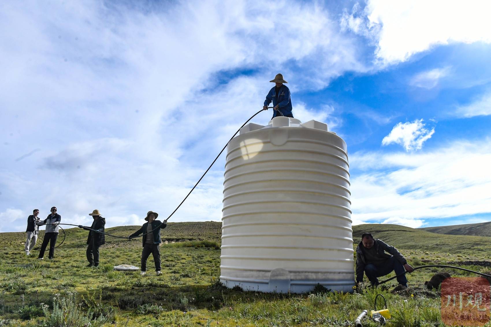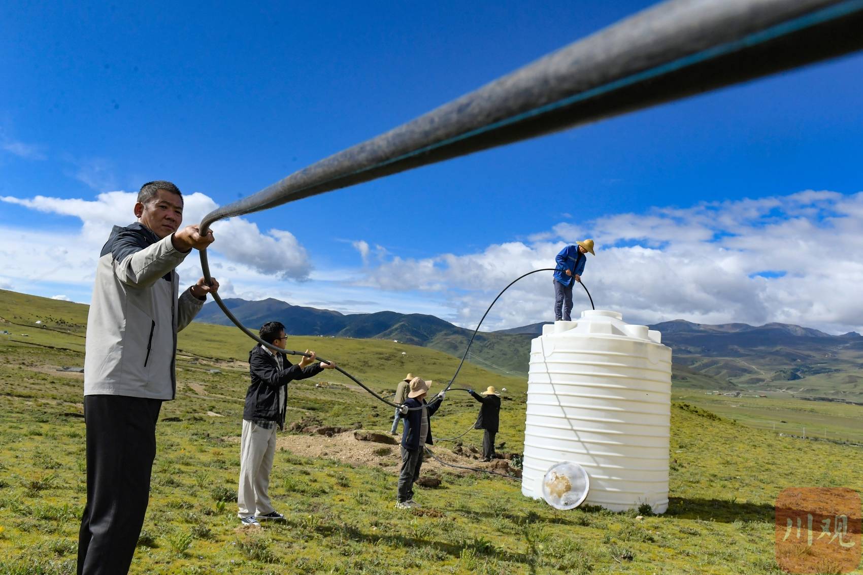 2025年9月4日,理塘县林业和草原局相关工作人员在海拔4000多米的高原上铺设水管。