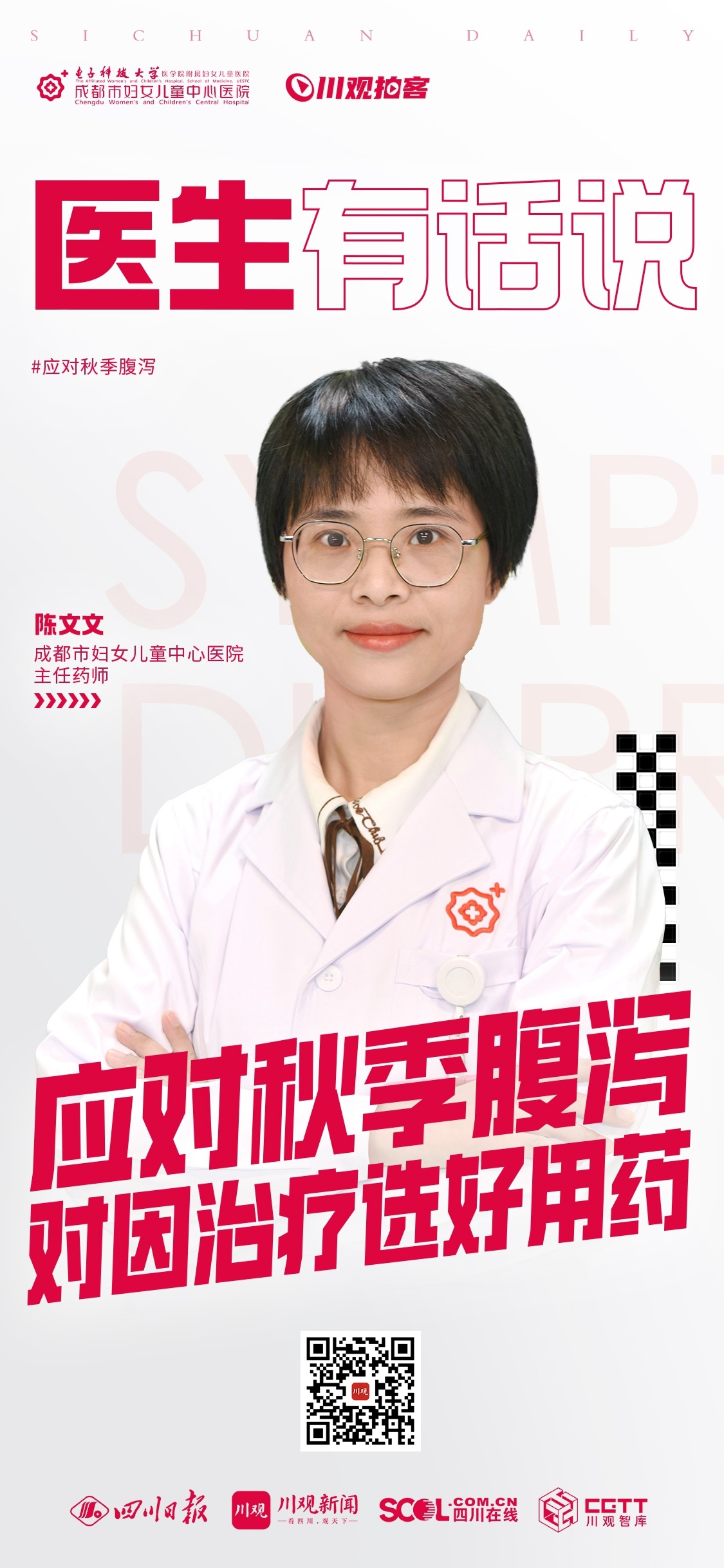 秋季腹泻不仅要止泻,还需要根据腹泻原因选择合适的药品。本期栏目,来自成都市妇女儿童中心医院的主任药师陈文文,就跟大家说一说如何选好腹泻药品。推荐药物均为常见非处方药,如果病情严重,还需及时就医。