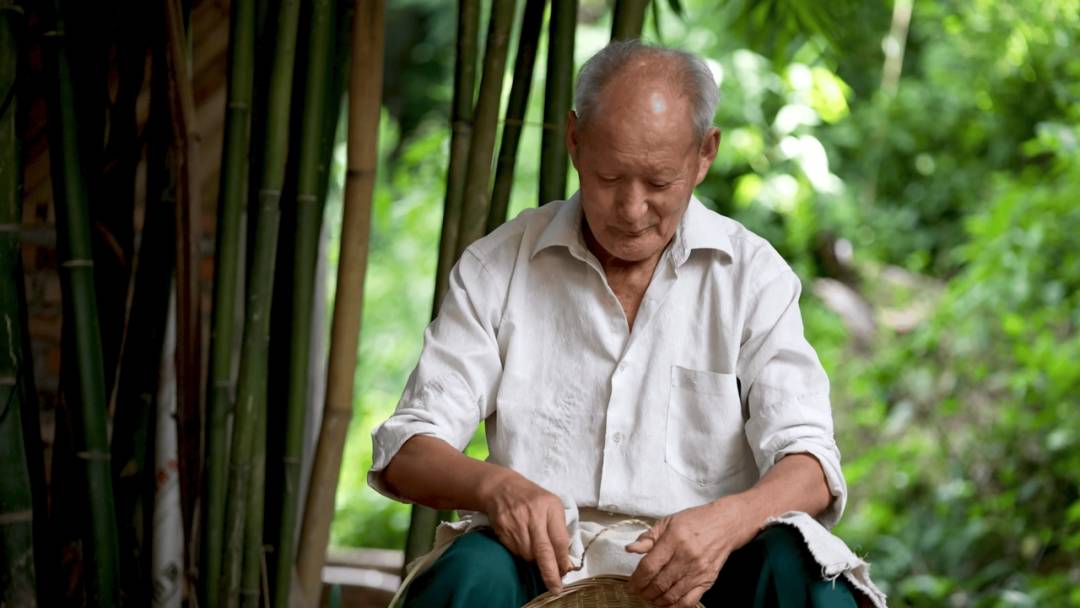 天兴桥村制作竹编的老人。西充县委宣传部供图