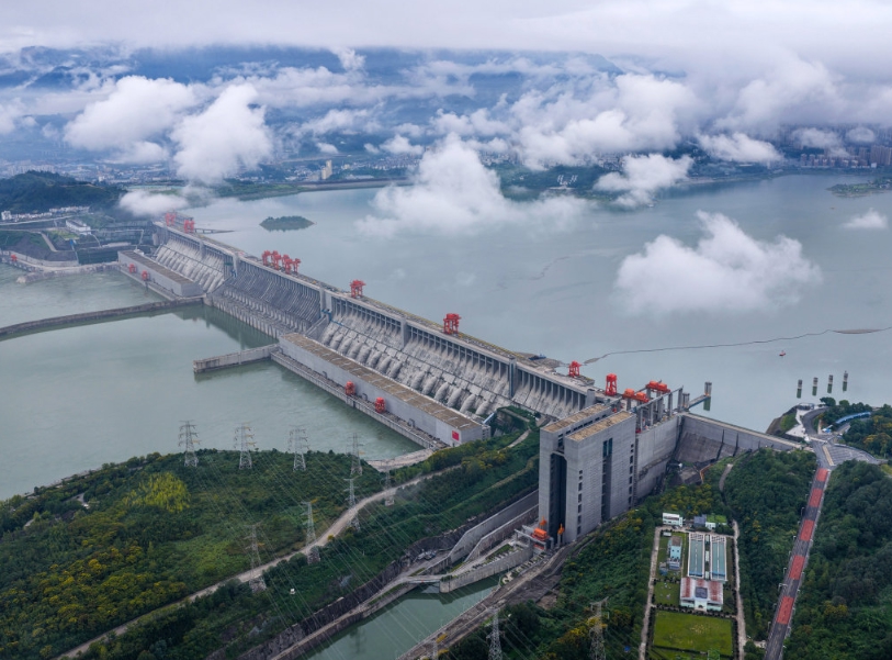 9月11日,在湖北省宜昌市拍摄的三峡水利枢纽工程(无人机照片)。