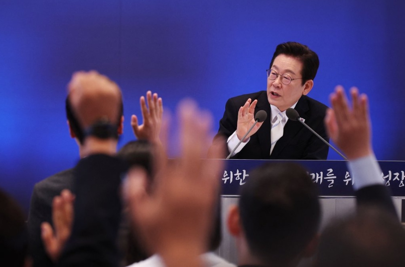 9月11日,在韩国首尔,韩国总统李在明出席就职百日记者会。