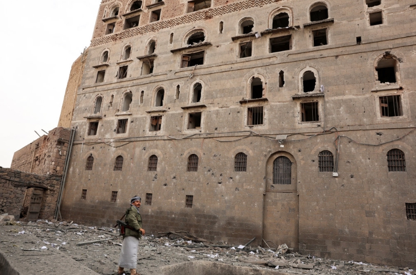 这是9月11日在也门首都萨那拍摄的空袭中受损的也门国家博物馆。