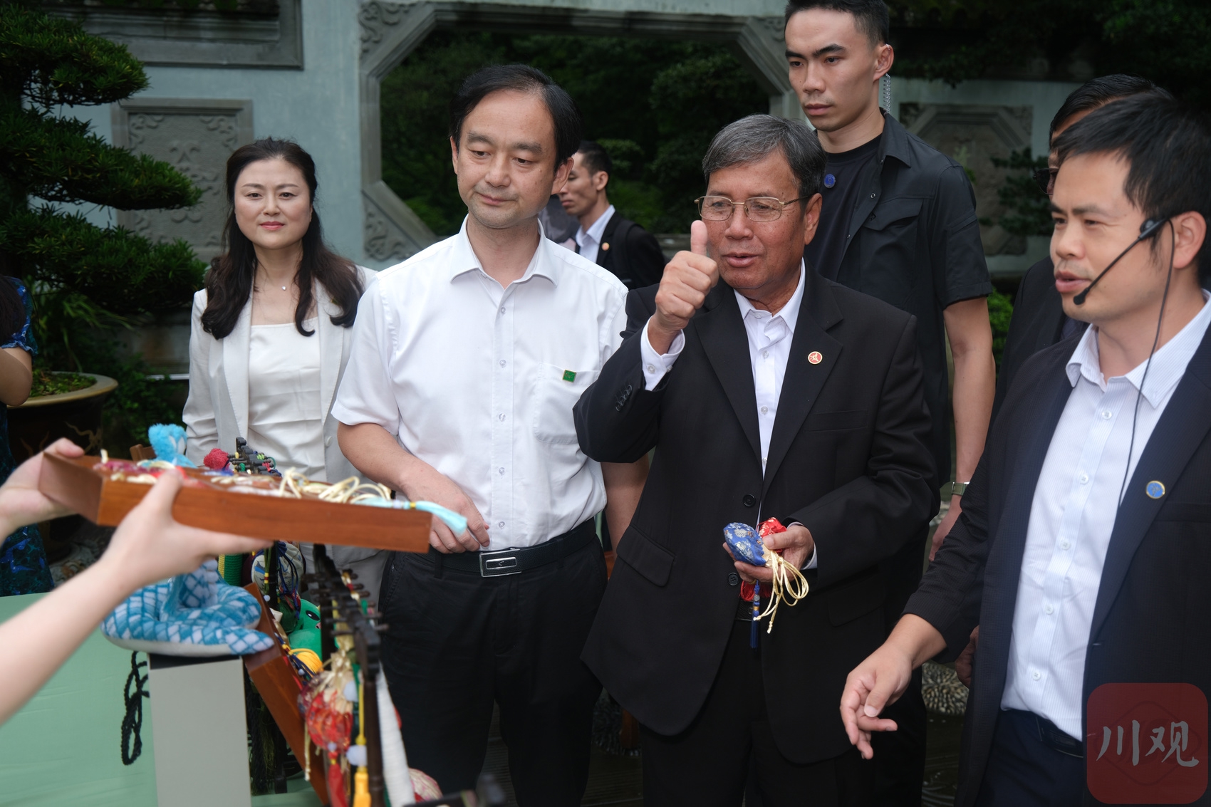 手工艺人为代表团成员送上香囊、艾草锤和美好祝愿。