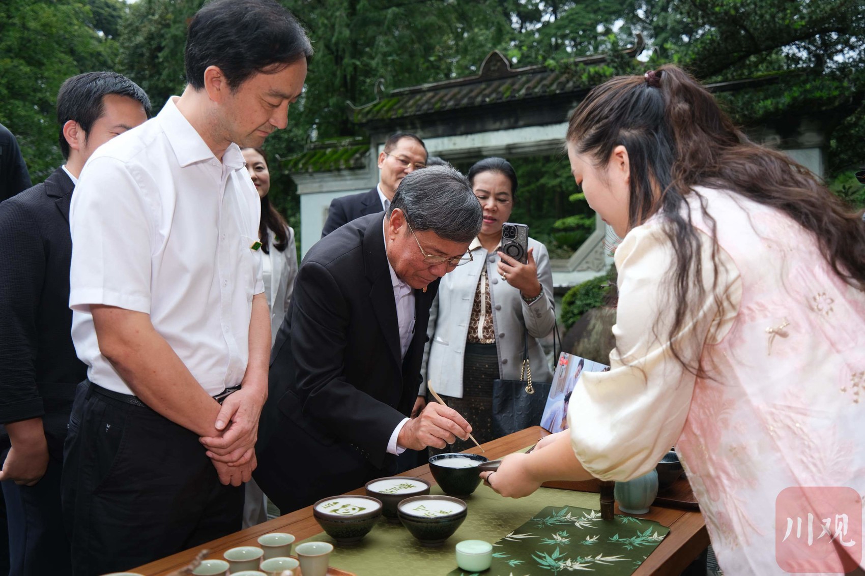 9月11日,老挝国会副主席坎贝·丹腊走进都江堰市天府源老茶馆,体验宋代点茶,开启中国传统文化的深度体验。