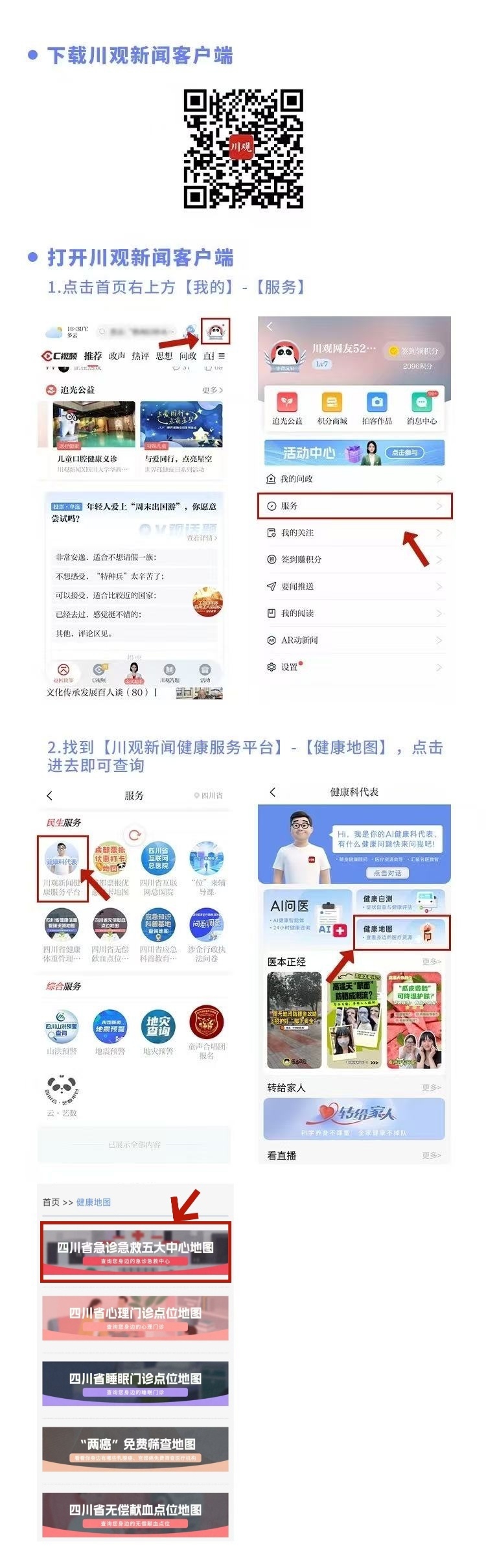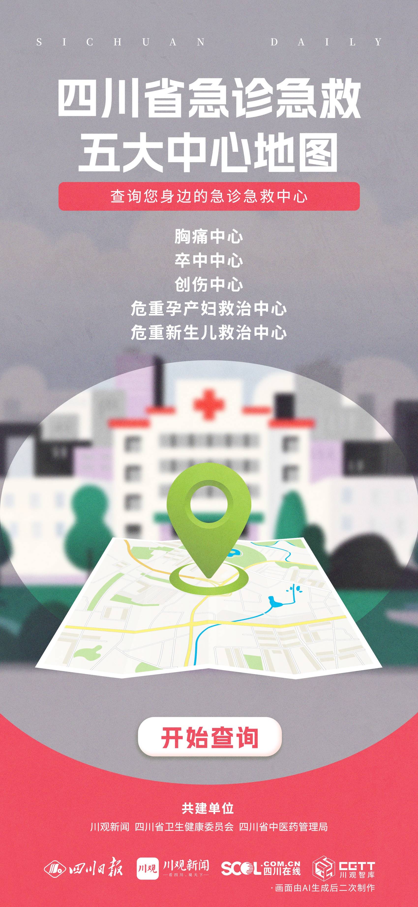 9月13日,四川省卫生健康委员会、四川省中医药管理局联合川观新闻推出“四川省急诊急救五大中心地图”。以后在四川遇到以上情况,打开手机就能找到最近的“救命站”——