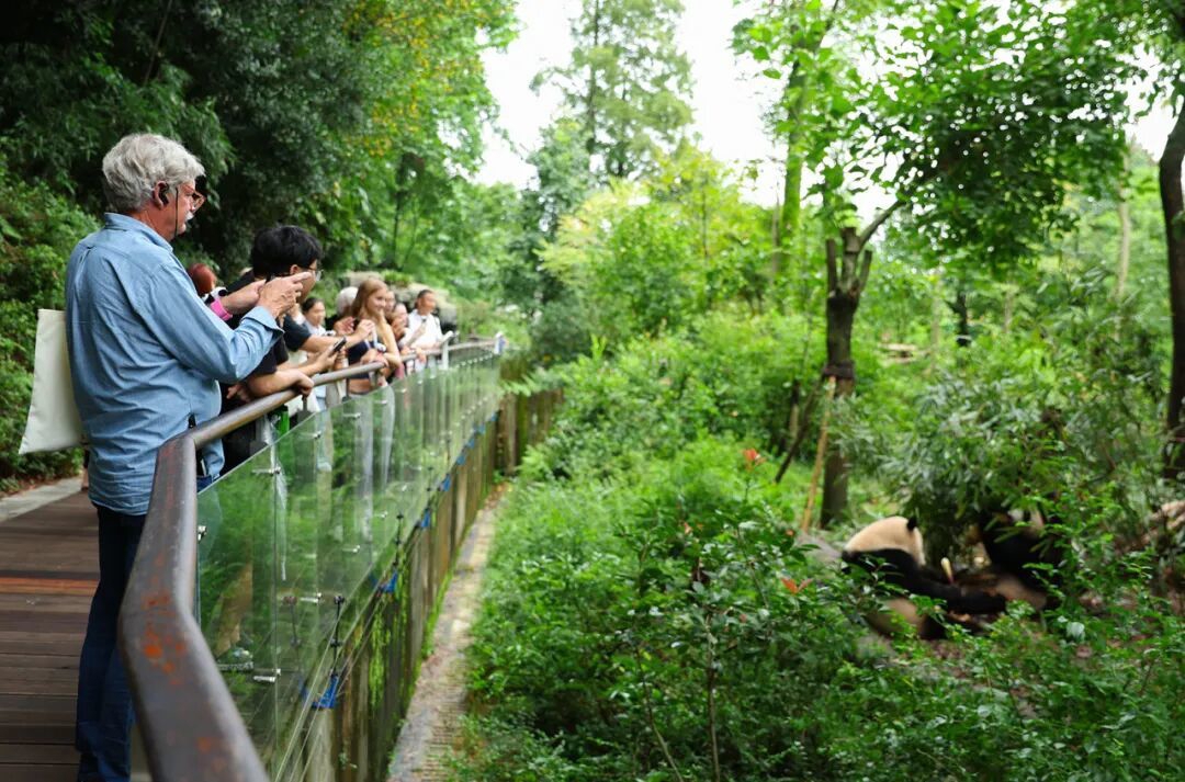 9月12日,中外嘉宾探秘熊猫谷,和“金熊猫”一起与大熊猫面对面 图据熊猫谷公众号