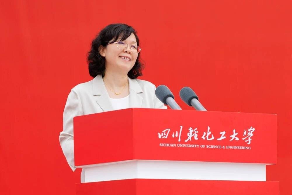 她首先代表学校向2025级7000余名本硕新生表示热烈欢迎,随后深情回顾了学校自1965年响应国家号召西迁自贡、扎根西部的办学历程。她强调,“652”不仅是一个历史代号,更代表着艰苦奋斗、科技报国的精神基因。如今,学校已拥有3个ESI全球前1%学科、9个国家级一流专业、27个硕士点,汇聚了一支高水平的师资与科研队伍,尤其在国防军工材料等领域突破多项“卡脖子”技术,彰显了川轻化人的使命与担当。