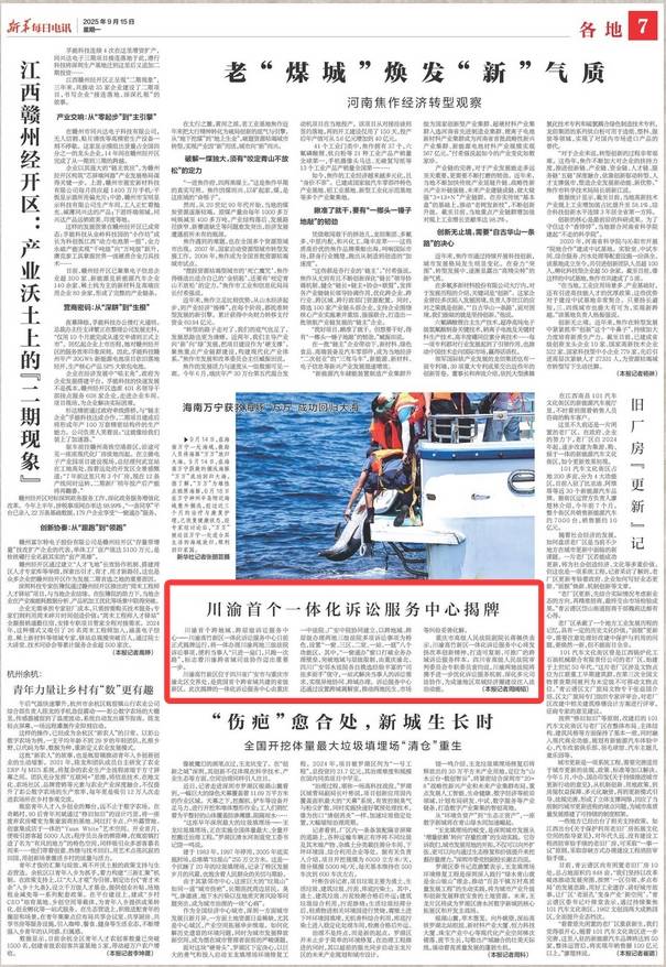 川渝首个跨地域、跨层级诉讼服务中心——川渝高竹新区一体化诉讼服务中心日前正式揭牌运行,将一体办理川渝两地三级法院诉讼事项,便利当事人“只进一扇门,只跑一次路”,标志着川渝跨省域司法协作迈出重要一步。
