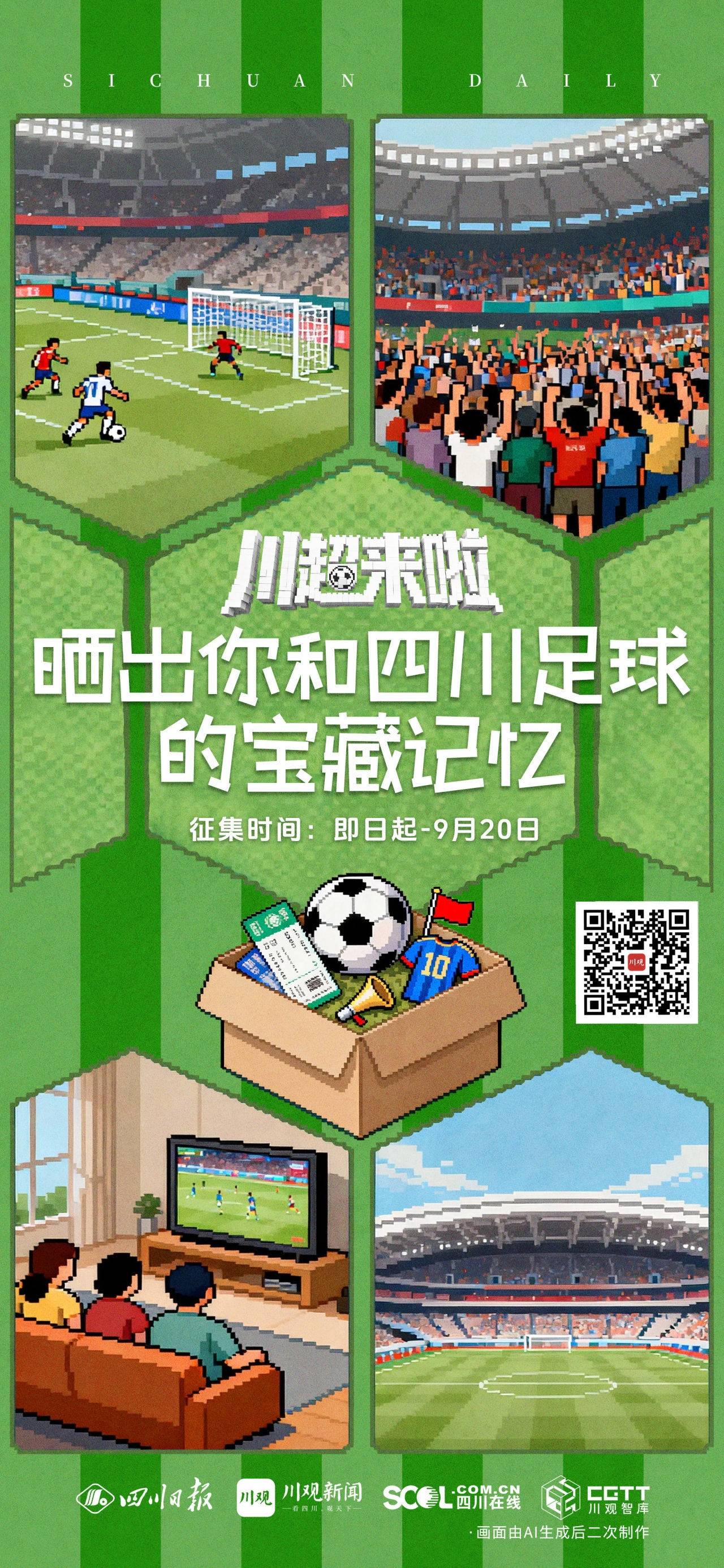 注意了哈!征集活动9月20号截止,现在还差你的那笔“回忆注脚”。无论你曾是场上飞奔的少年、看台摇旗的球迷,还是与足球有过故事的路人……川超揭幕战的哨声马上要响,把你的故事交出来,让全川都看到:从全兴时代到川超元年,我们对足球的爱,从来没变过!四川球迷的热情,从来没变过!