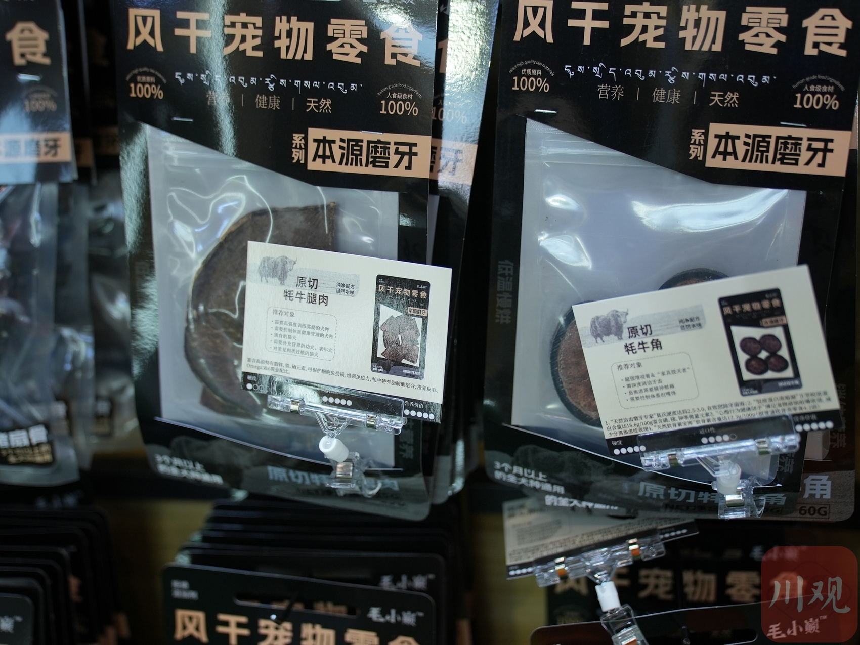 在6号馆,一家成都本地企业推出的“高原牦牛肉”系列宠物零食备受青睐。企业负责人黄婷向记者展示了原切牦牛腿肉、整根牛红肠、原切牦牛角等产品,产品以其“无添加、手工原切、低温烘焙”工艺,最大限度保留了食材的品质与风味。原切牦牛腿肉尤其热销,不少宠主称赞:“肉的纹理清晰,家里的狗狗肯定喜欢。”