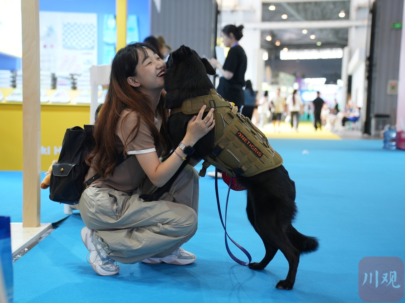 不少爱宠人士带着自家“毛孩子”前来逛展。