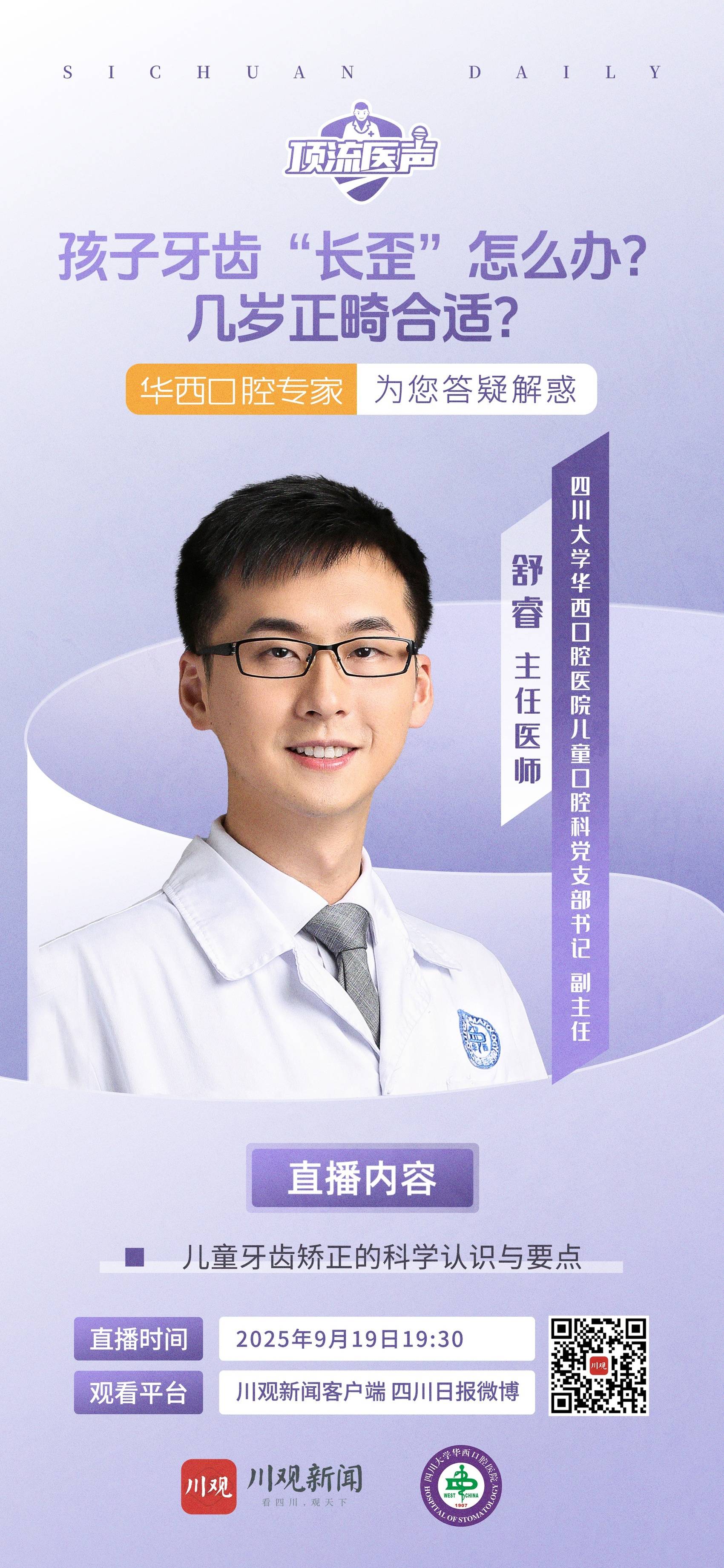 2025年9月20日是第37个“全国爱牙日”,川观新闻联合四川大学华西口腔医院推出“健康直播课”。