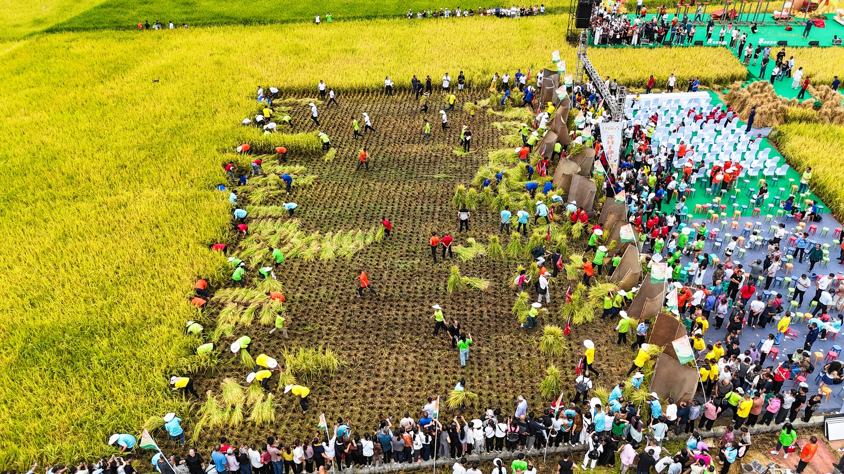 丰收的气息洋溢在古蔺田间。前不久,以“庆农业丰收·享美好生活”为主题的2025年古蔺县农民丰收节举行。打谷子、抓鱼比赛,歌舞表演,稻田T台秀……万亩稻田做舞台,农民群众当演员,大家用欢歌笑语共庆丰收。