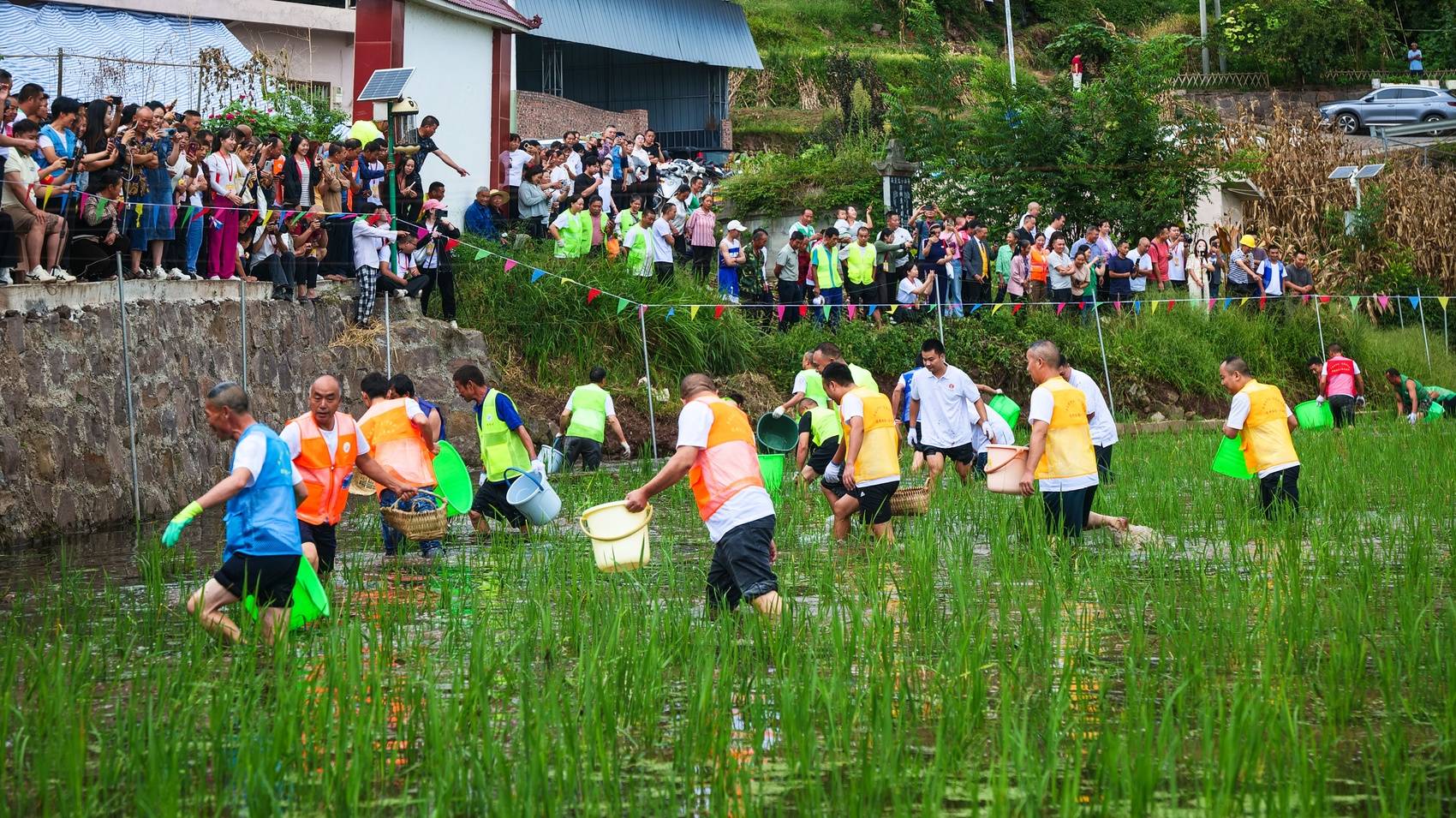 白沙场镇主会场举办了打谷子比赛,15支村(社区)队伍激烈竞技,裁判手持卷尺和称重器,在每一块比赛田里测量、称重;德耀镇分会场的抓鱼比赛同样热闹非凡,村民们赤脚下田,跳着跑着追逐稻花鱼。此外,主办方还准备了打糍粑比赛、小黄鸭漂流等趣味项目。