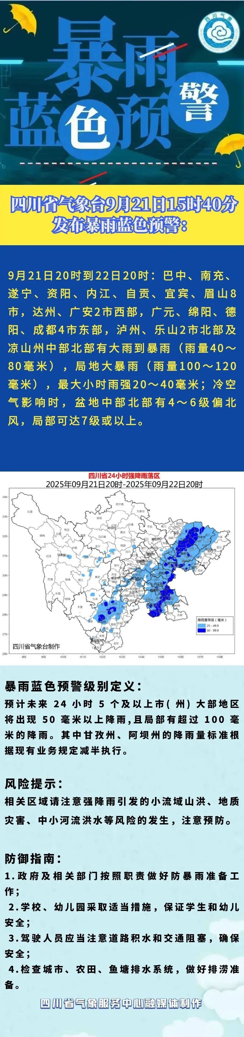 大雨到暴雨,局地大暴雨!四川发布暴雨蓝色预警