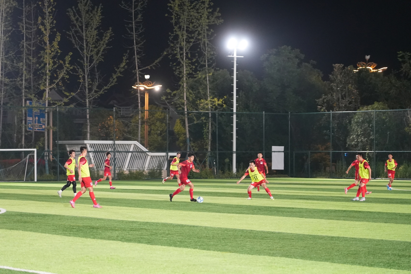 9月17日傍晚时分,位于眉山市东坡区的东坡岛体育公园足球训练场亮起灯光,身着红色球衣的李雨晋与队员们奔跑在球场上,控球、回传……一个个矫健的身影在暮色中画出利落的红色弧线。