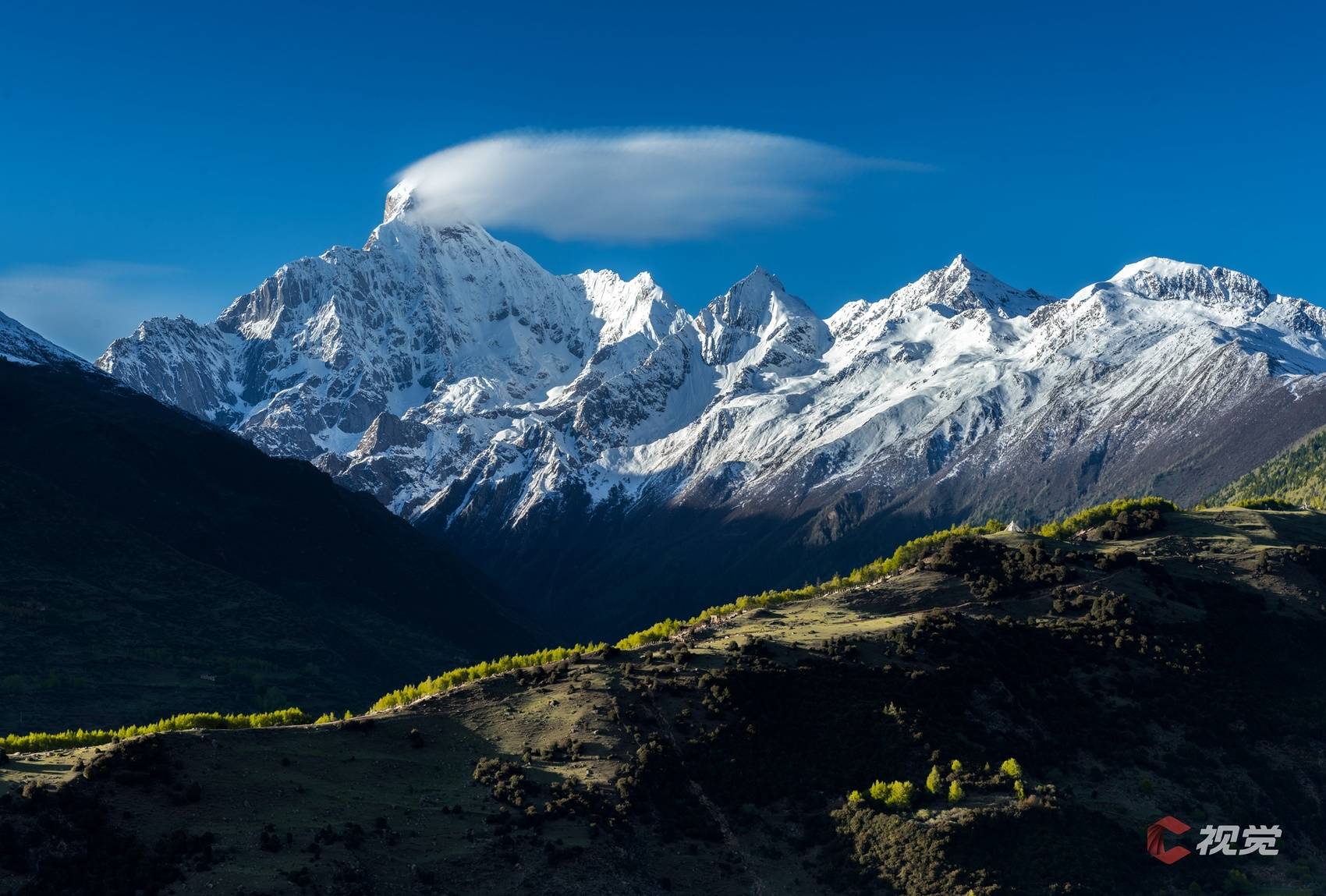 在猫鼻梁观景台遥望四姑娘山幺妹峰戴上“帽子云”。C视觉签约摄影师 张梦
