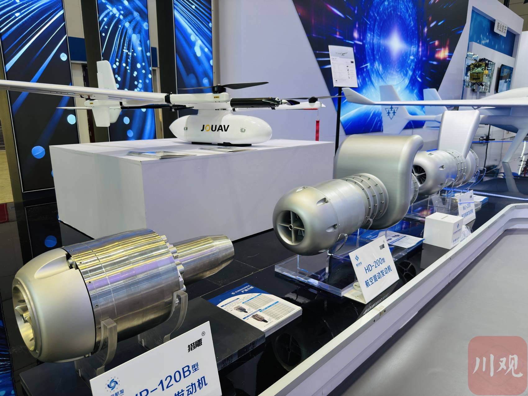 在A馆展区内,记者还看到了三台小巧精干的航空发动机。这些发动机虽然外观小巧,但一旁的资料介绍里却显示该发动机具有“推力大、体积小、重量轻、油耗低、高速飞行性能优异”等诸多特点。