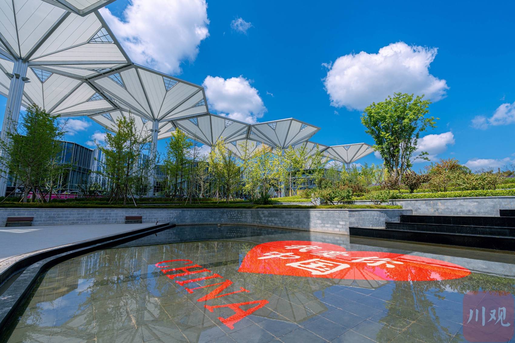 2025年9月24日,在成都地铁18、19号线福田站附近的成都未来科技城“福田TOD”,一栋栋别致的建筑在蓝天白云衬托下格外美丽。