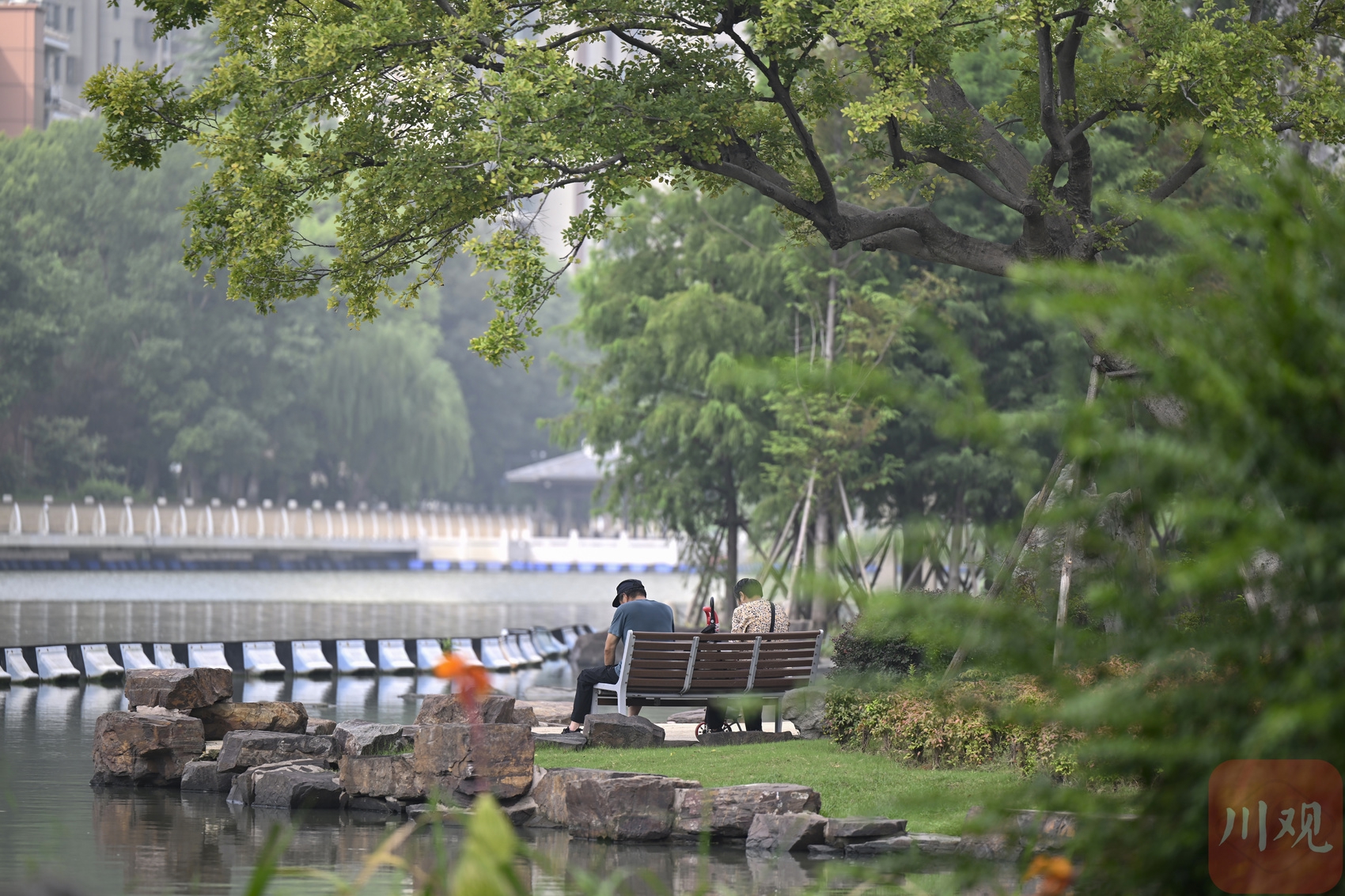 9月25日,无锡市梁溪河亲水绿带,老人正在休闲观景。据了解,梁溪河经过改造后,已成为宜居、活力、开放、共享的滨水的“城市客厅”。