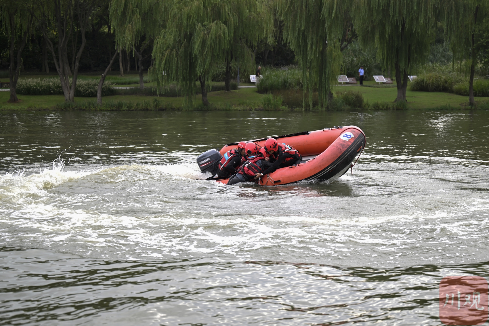 9月24日,无锡市长广溪湿地公园,蓝天救援队正在进行水上救援训练。