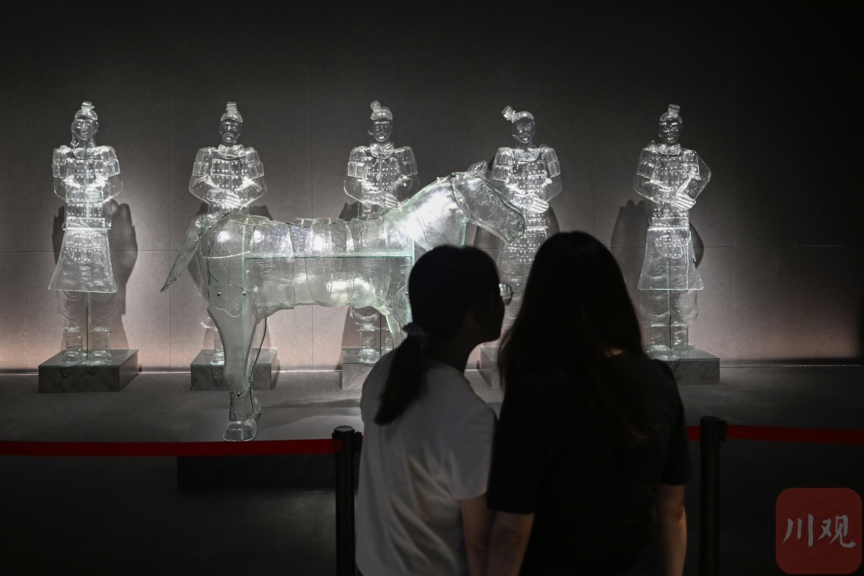 9月24日,无锡市绿波美术馆,游客观赏玻璃“兵马俑”。