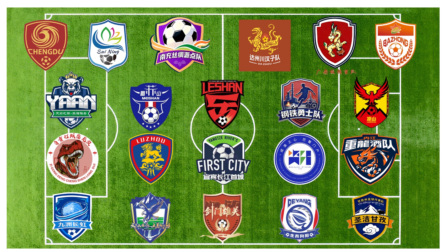 “川超”各支球队队徽。(按赛区分布,排序不分先后)