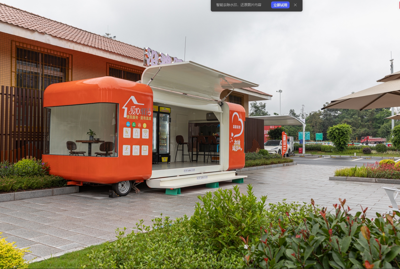 高速公路收费站,除了收费的卡口,还包括周边的站房区域,这些区域一般是收费站员工的办公、休息区域。四川路桥相关负责人表示,此次收费站开放的正是这一区域,打造了集多种服务功能于一体的综合“驿站”。