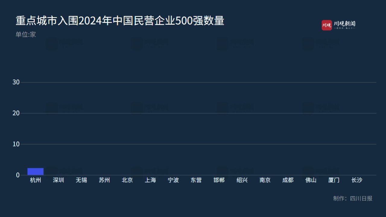 然而,放眼全国竞争版图,成都工业企业中,缺乏在全国具有显著影响力的本土头部企业。2024年中国民营经济500强中,成都仅10家企业上榜。