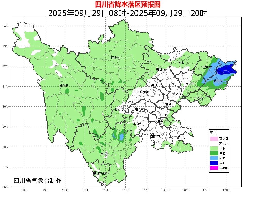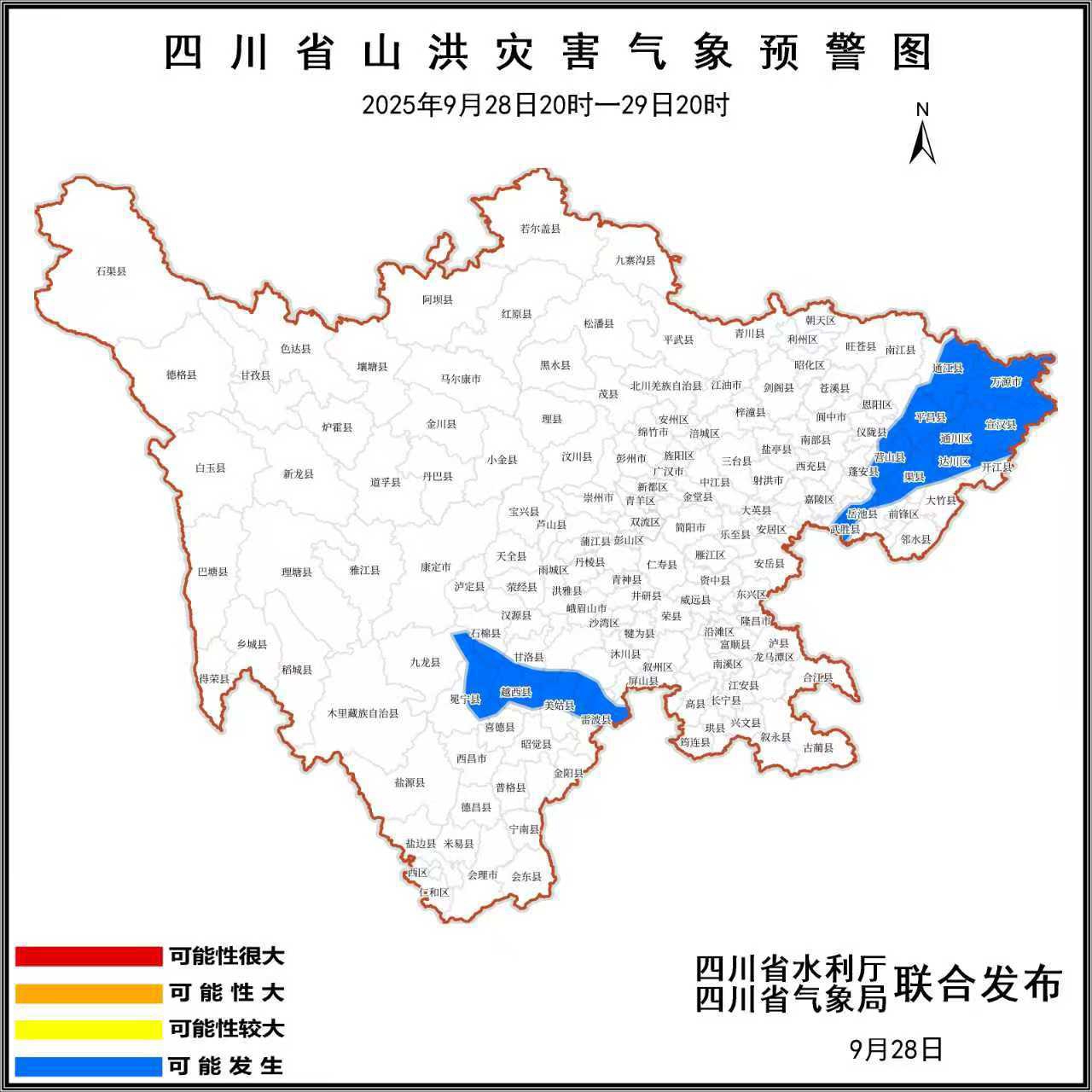据四川省水文水资源勘测中心预测,未来一周(9月29日—10月5日),渠江可能出现明显涨水过程,但发生超过警戒水位洪水的可能性较小。预计10月1日至5日,宜宾、泸州、广元、巴中、达州、甘孜、阿坝、凉山等地部分中小河流将出现明显涨水过程,个别中小河流可能发生超过警戒水位的洪水。